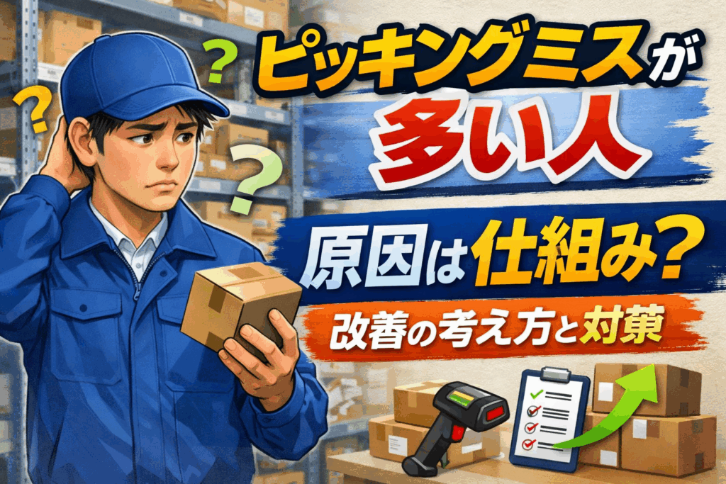 ピッキング ミス が 多い 人|原因は仕組み?改善の考え方と対策|在庫管理 ピッキング作業でミスが続くと、「自分は向いていないのでは」と感じてしまうことがあります。しかし実際には、多くのピッキングミスは作業者個人の能力ではなく、作業の仕組みや... -