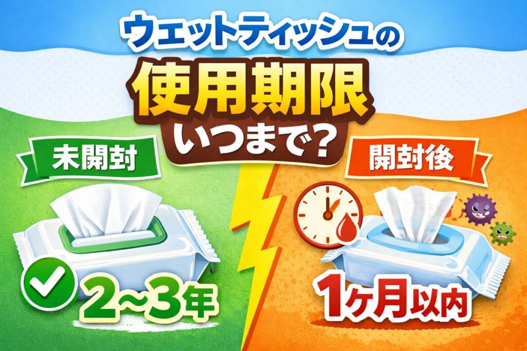 ⑨ ウェットティッシュ 使用期限はいつまで?未開封・開封後の違い ウェットティッシュは、掃除・衛生管理・外出時など幅広く使われる身近な消耗品です。しかし「使用期限はいつまで?」「未開封ならずっと使える?」「開封後はどれくらいで捨てるべき?」... -
