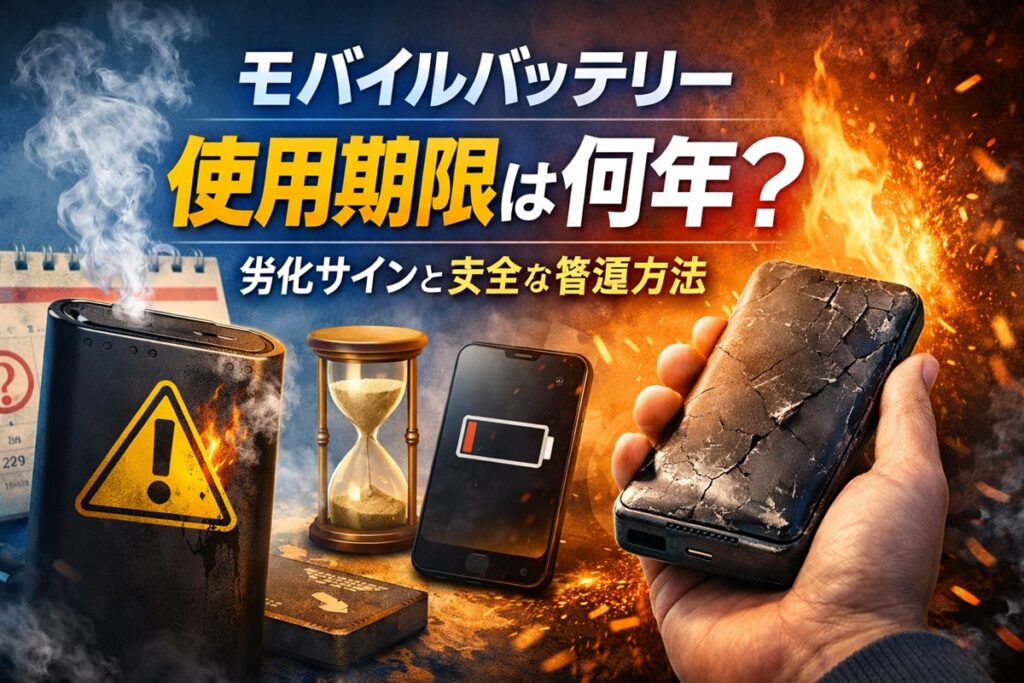 ③ モバイルバッテリー 使用期限は何年?劣化サインと安全な管理方法 スマホやタブレットの必需品となったモバイルバッテリー。「これ、いつまで使っていいんだろう?」「使用期限ってあるの?」と不安に思ったことはありませんか。 モバイルバッテリーには... -