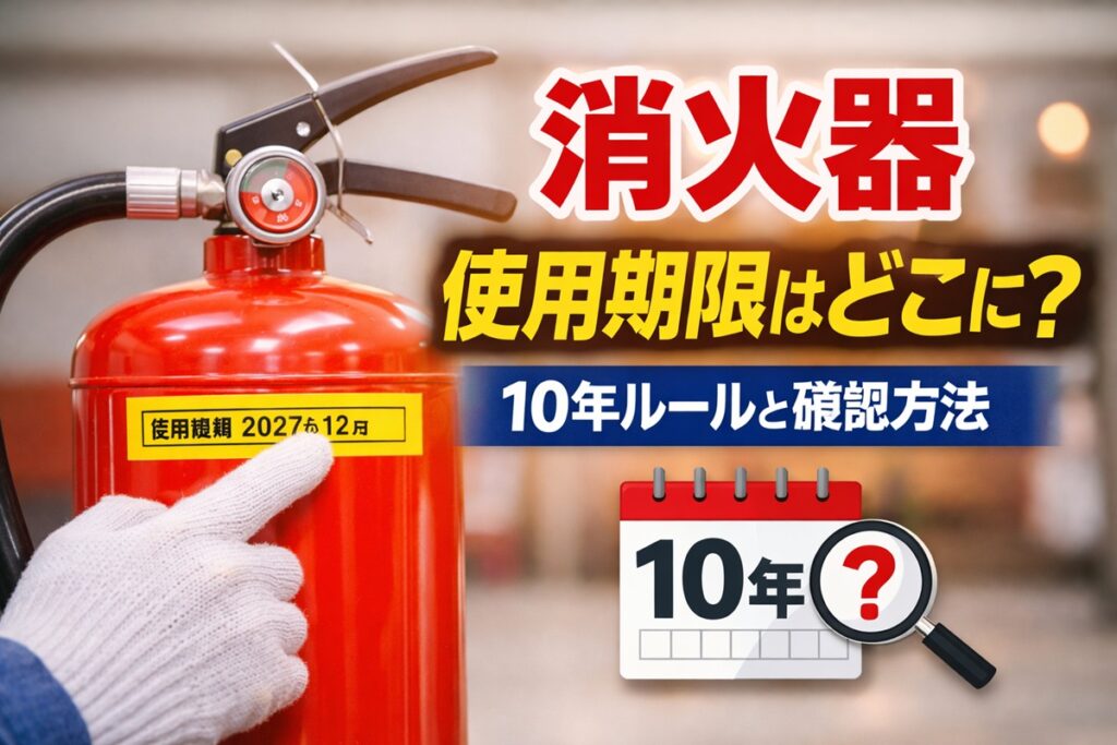⑤ 消火器 使用期限はどこに書いてある?10年ルールと確認方法 家庭や職場、倉庫など、いざという時のために設置されている消火器。しかし、 使用期限はどこに書いてあるのか 「10年ルール」とは何なのか 期限切れのまま置いていて問題ないのか を正確に把... -