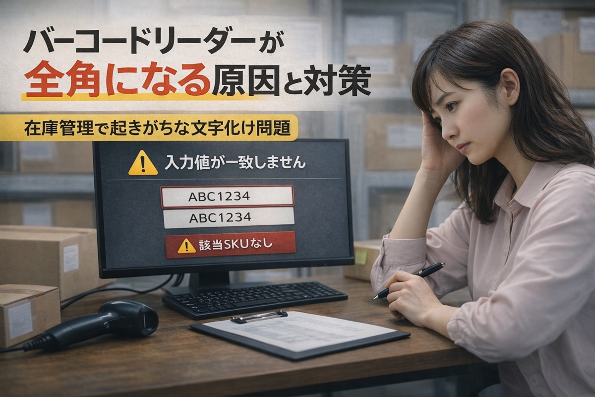 バーコード入力が全角になってしまう原因と、文字化けを防ぐための設定・対策を解説しています。
