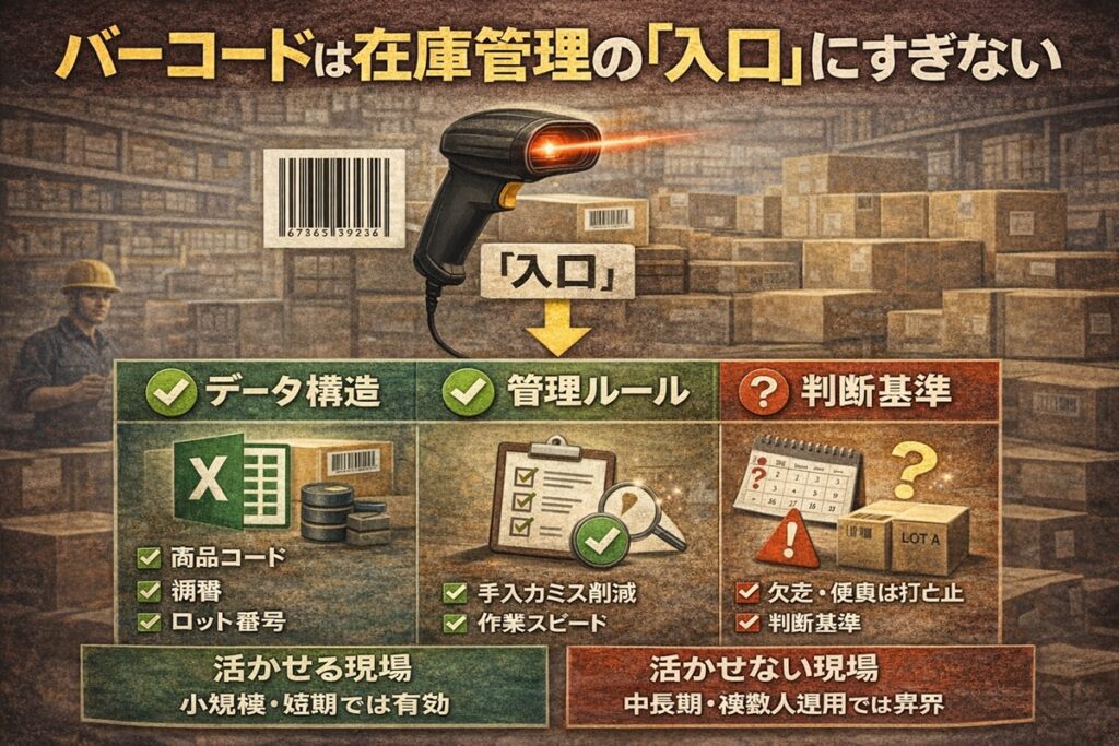 バーコードリーダーは、在庫管理を「自動化」してくれる魔法の道具ではありません。