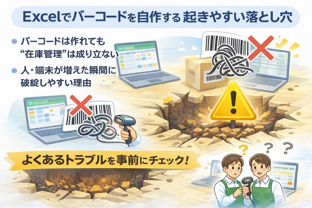 「バーコード作成 エクセル」運用で在庫管理が破綻しやすい理由と、現場で実際に起きやすい落とし穴を、初心者にも分かる形で整理します。