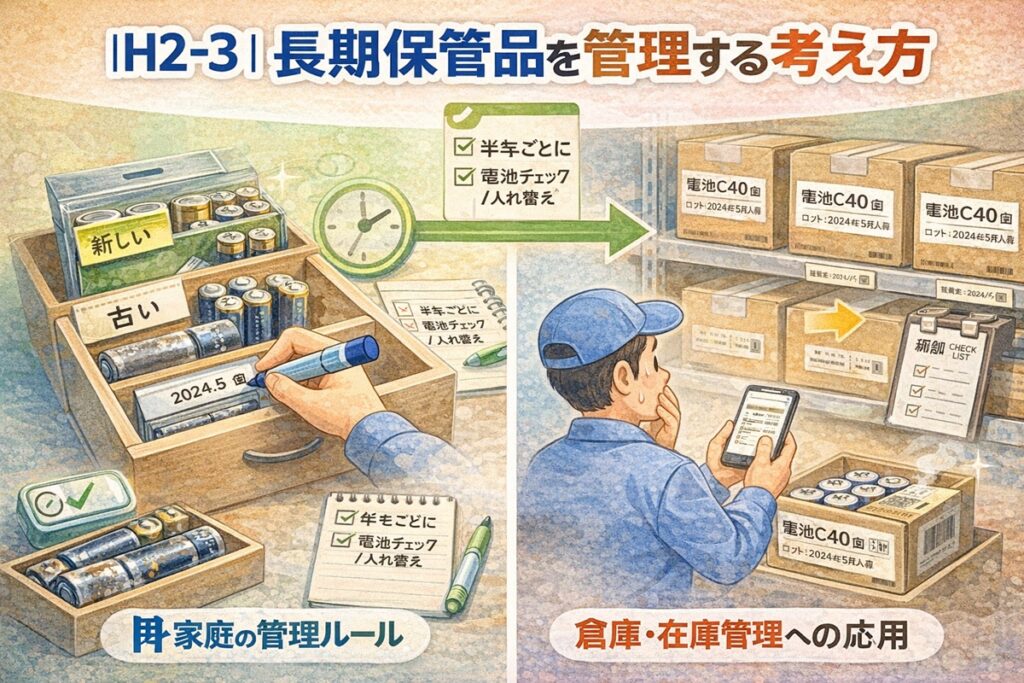 電池のように「長く保管できる」と思われがちな製品ほど、