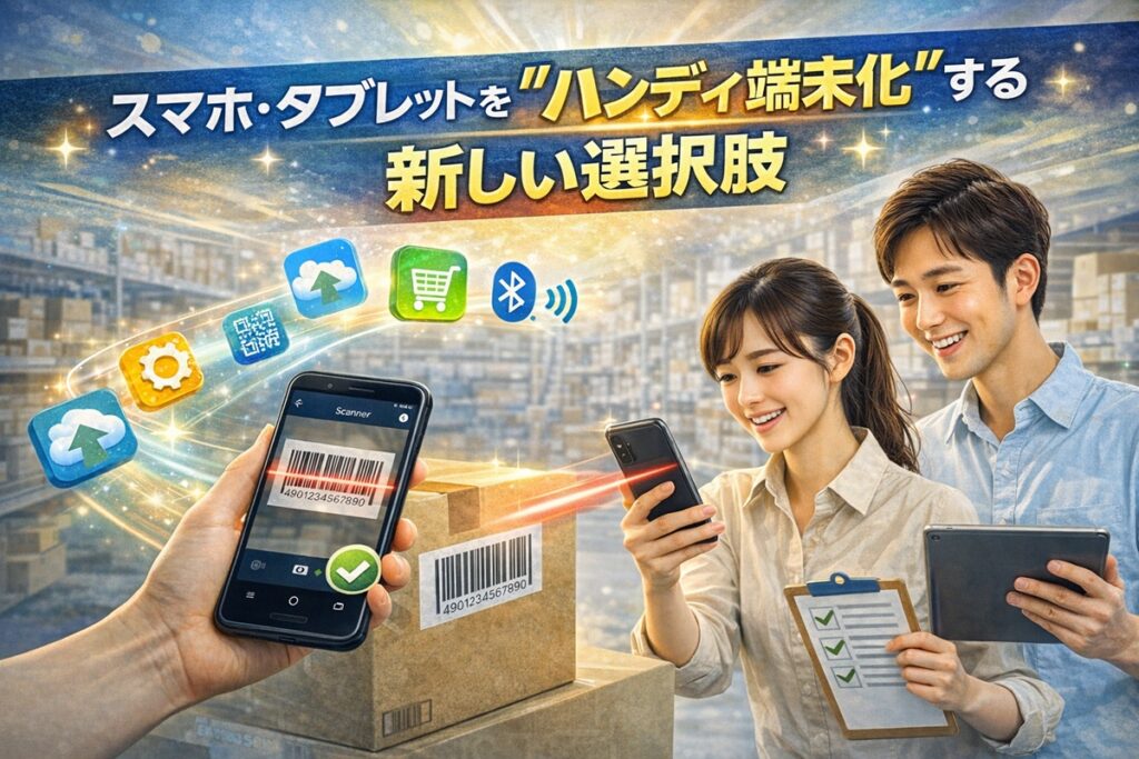 近年は、専用のバーコードリーダーを使わなくても、**スマホやタブレットに専用アプリを入れるだけで“ハンディ端末化”**できる時代になってきました。