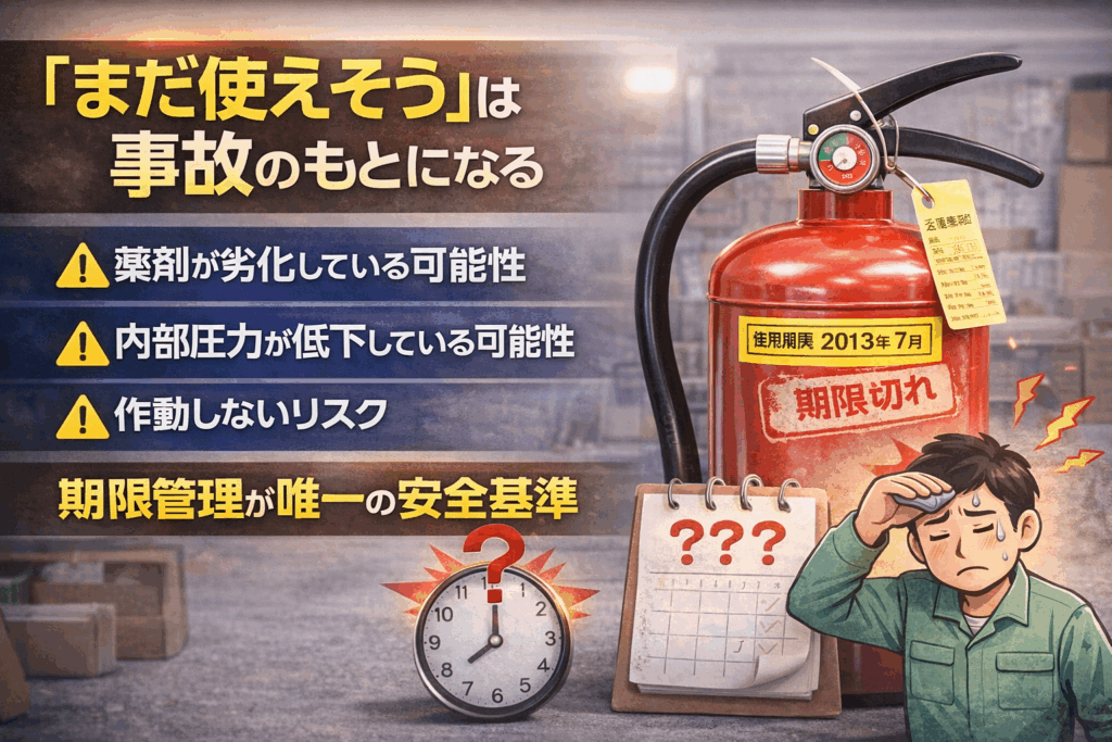 使用期限が切れた消火器は、設置していても本来の役割を果たさない可能性があります。
